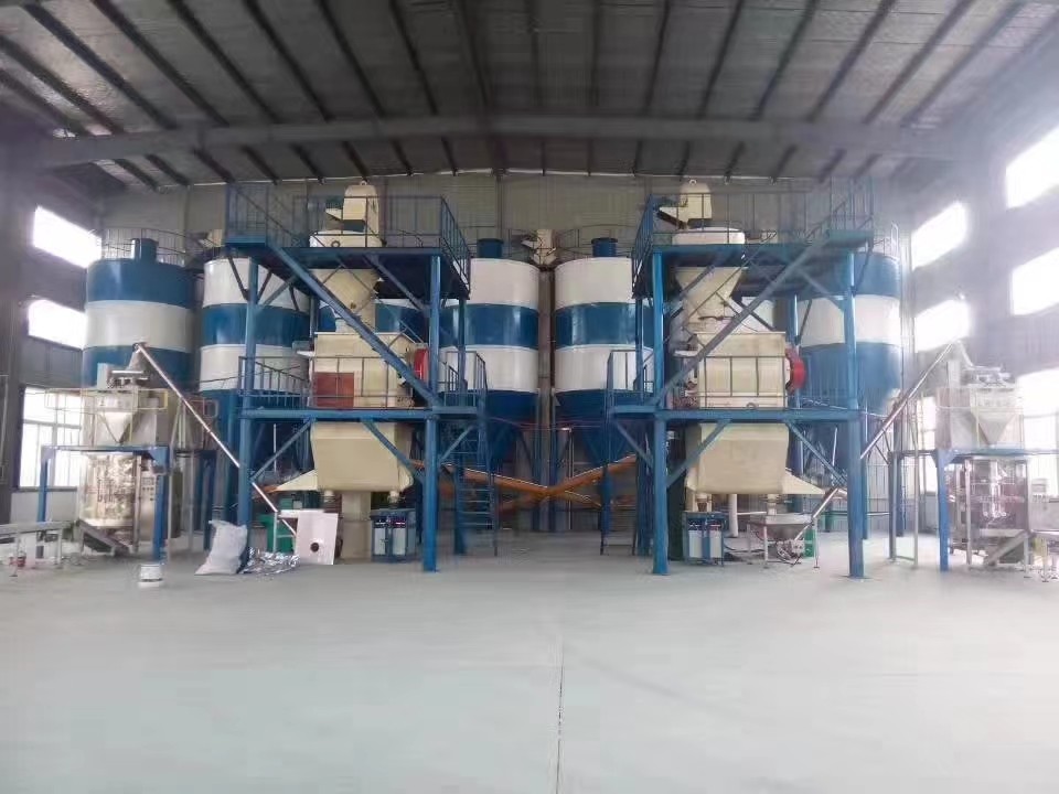 全自动干混砂浆成套设备使用的是双轴无重力混合机的混合速度相当快,一般情况下2-3分钟即混合均匀,产能非常高。在混合机里面混合好的成品通过气动快开门,迅速放到成品料仓进行缓冲、储存。成品料仓与包装机之间通过软连接进入包装机计量、打包。产量特别大的用户,可以在包装机后部工序增加皮带输送机,直接将成品输送到成品区域或者卡车。